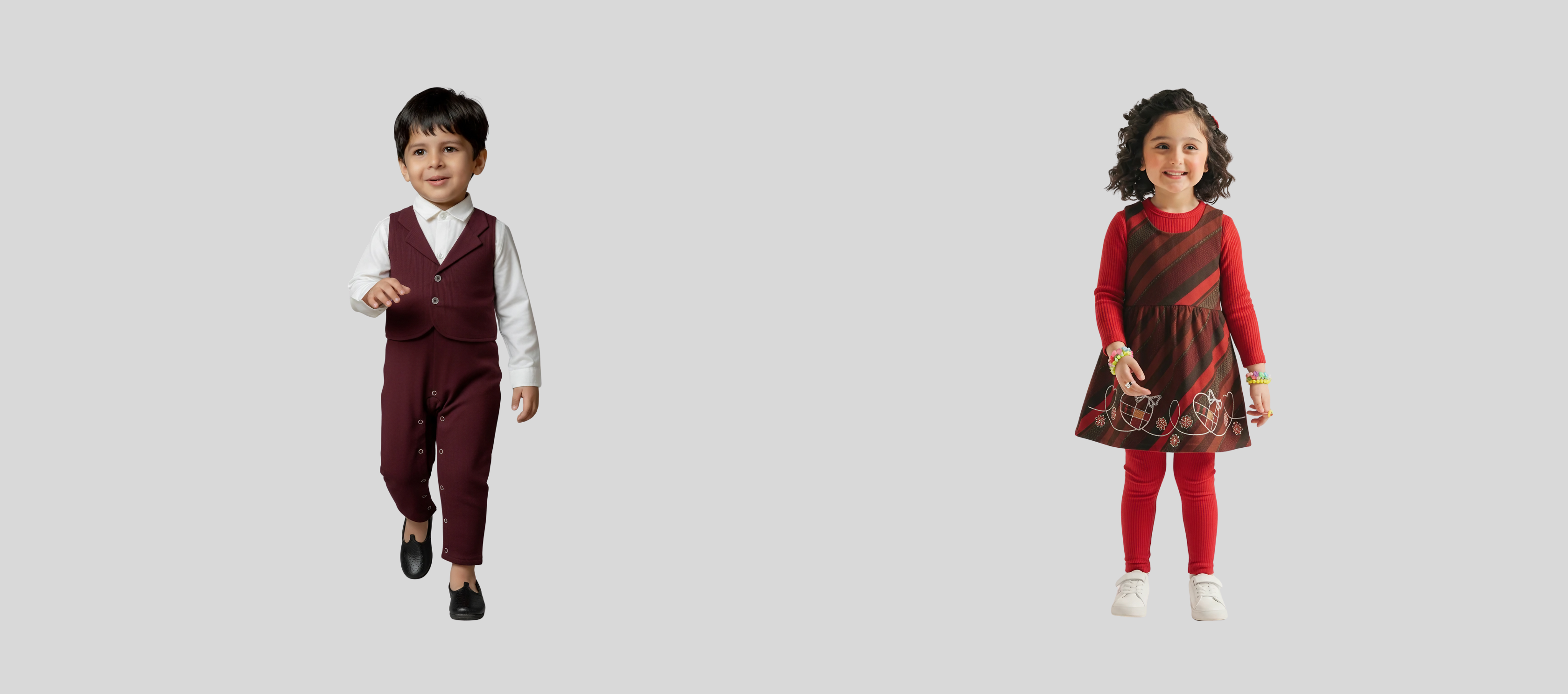 Vesto Kids | Vibrant Red Floral Embroidered 2-Piece Ethnic Suit